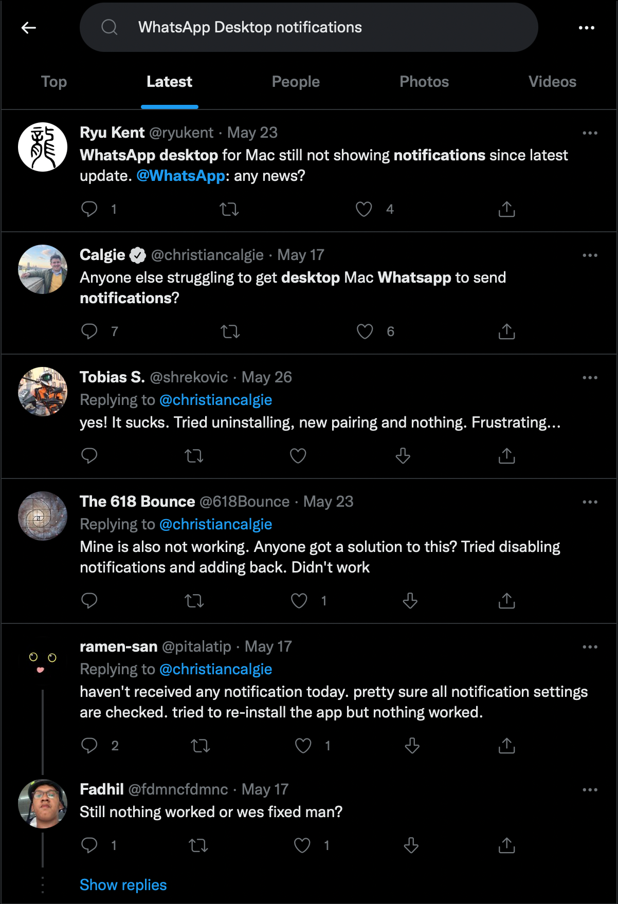 Many customers were having problems using WhatsApp Desktop, as they were unable to get push notifications from the desktop version. Even a quick search on Twitter indicates that some users were unable to get push notifications and were searching for information and a solution: