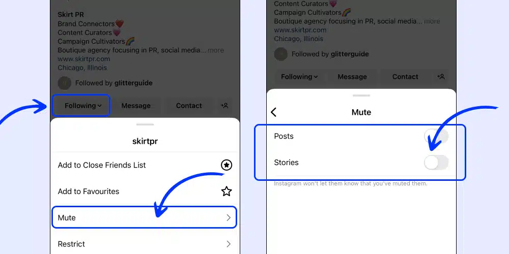 In this situation, you may select Mute, which will remove the person’s material from your feed while continuing following them; in other words, they will be unaware that their postings are no longer appearing in their feed.